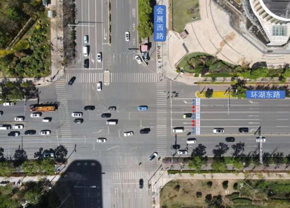 環湖東路與會展西路交叉口位于昆明滇池國際會展中心西南側,環湖東路為東西向城市主干道,為環滇池道路組成部分之一,會展西路為南北向城市主干道,該節點為西山區、度假區與呈貢區之間通勤主要經過的節點之一,同時也是滇池國際會展中心對外轉換的樞紐點。