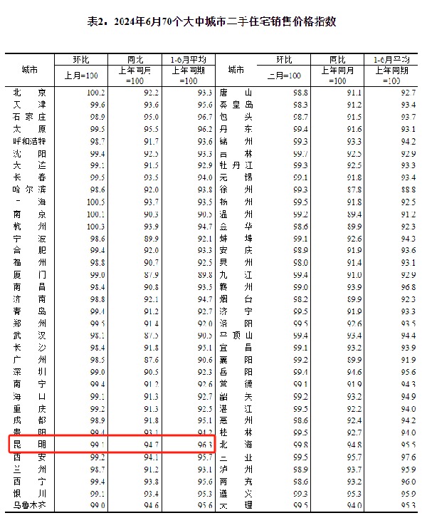 至此,昆明今年上半年新房、二手房價格變動指數已全部公布。