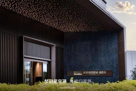 大華·錦繡麓城入口采用星空頂設(shè)計(jì),“星空下”的麓城,用溫暖的燈光指引著人們回家的方向。在色彩上,采用星耀灰幕墻磚搭配金屬鋁板、柵欄,低飽和度色彩搭配,體現(xiàn)出項(xiàng)目的高端品質(zhì)。