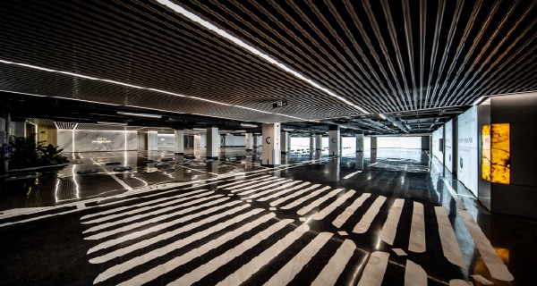 車(chē)庫(kù)內(nèi)部整體基調(diào)以簡(jiǎn)潔大氣為主,部分車(chē)道頂部是鋁格柵+燈帶的設(shè)計(jì),車(chē)道兩邊同色系步道,不僅視覺(jué)美觀,更重要的是做了交通分區(qū)、導(dǎo)視箭頭、柱體防撞條設(shè)計(jì),標(biāo)識(shí)清晰,處處充滿(mǎn)細(xì)心關(guān)懷。