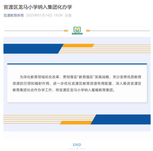 云附星耀教育集團成員校龍馬小學采用本部統一的管理模式、考試標準、培訓和師資教育,確保教學質量的高水平。學校的師資力量也十分優異,教職工79人全員帶編上崗,其中官渡區學科帶頭人、區級骨干教師、區級教壇新秀共22人,占教師總數的27.84% 。硬件設施一應俱全,標準化報告廳、舞蹈室、古箏教室、科創實驗室等均按最新標準配置,并開設20 +特色課程,致力于培養孩子多元化的能力。