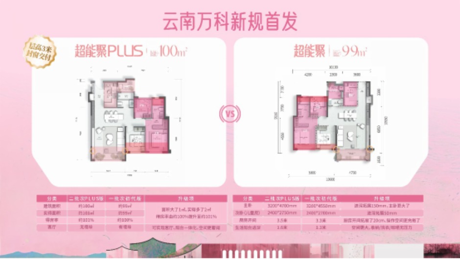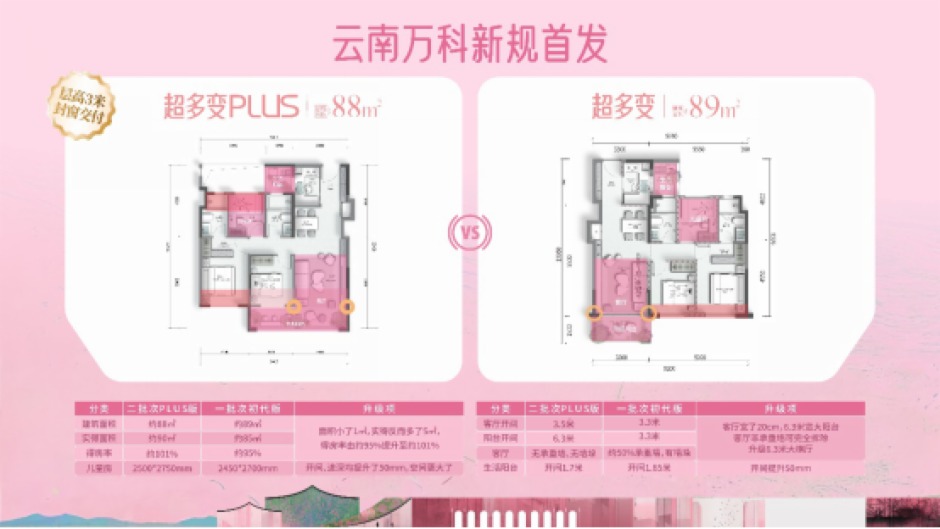 就拿最小的89㎡超多變plus戶型為例,3房2廳2衛(wèi)約6.3米寬大陽(yáng)臺(tái)的配置,直接秒殺市場(chǎng)同等面積產(chǎn)品;高達(dá)約87%非承重墻占比——你想要的大橫廳,妻子想要獨(dú)立衣帽間,酒店級(jí)套房式主臥,孩子想要的游戲室、亦或者想和老人同住通通能滿足。創(chuàng)新S墻內(nèi)嵌雙開門冰箱設(shè)計(jì),讓空間利用率提升,得房率更是從原先的95%躍升至101%,媲美市面106-113㎡的改善房。