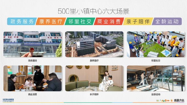 500里超級社區(qū)小鎮(zhèn)中心目前已有六大場景:政務(wù)服務(wù)、康養(yǎng)醫(yī)療、鄰里社交、商業(yè)消費(fèi)、親子陪伴、全齡運(yùn)動。