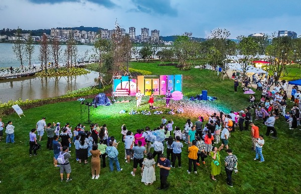 活動當天,到訪現場的游客絡繹不絕,呈現出一片火熱的景象,公園化身為歡樂的海洋,公園生活在此刻也得以更具象化。綠茵場上,運動愛好者以球會友,揮灑鄰里情誼;落日余暉下,創意市集與晚霞音樂會交織,點燃湖畔夏夜活力,更將這份喜悅推向高潮,點亮朋友圈的視覺盛宴。