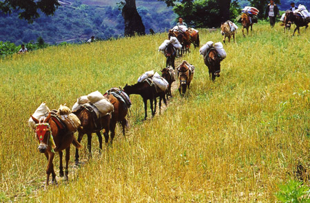 由于國內外市場需要大量的茶,茶成為中央政府手中的一張王牌。由此產生的“茶馬互市”、茶輸世界讓“茶馬古道”上的運輸出現了空前繁忙。可以想象:當亞熱帶雨林的大葉茶被制成各種形制的茶,讓馬幫拖著走向緬甸、印度,走向中國的西藏和內地。這緩緩馬隊的行駛中,馬鍋頭的吆喝聲、馬幫的鈴聲、蹄聲伴著水聲、風聲、以及野獸的吼聲……這是一種什么樣的運輸旅程。而陽光、水分、自然之氣,使來自云南的茶在長年累月的運輸商貿過程中,被多次不規則地發酵,于是一種偉大的文明誕生了,普洱茶成為自然后發酵的茶,這是茶葉工藝上的一次革命,讓我們體會到了“越陳越香”的另類茶——普洱茶。