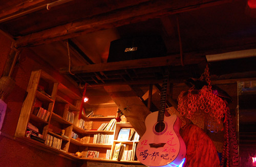 酒吧很小,撐爆了也就只能坐二十個人,沒有服務(wù)員。應(yīng)該說,AC既是老板、是歌手,也是服務(wù)員。酒有標(biāo)價,但是沒有專門收錢的人,就在樓梯口掛一個小籃子,完全自覺投幣,也不找零。不管投,還是不投,他都不會去看一眼,也不會去說。去了幾次,我發(fā)現(xiàn)其實在AC那里混的大部分都是熟面孔,古城的客棧老板,或者在其他酒吧駐唱的歌手。搭檔阿鬼跟我說,在麗江久留的人,其實都挺膩煩那些游客如織的酒吧,而這里不同,更像是平時大家聚會的地方。我們平時都會多投一些錢,除了是擔(dān)心AC這樣做會不會虧本,也是給那些不很熟悉的客人起表率作用。“去別的酒吧也是花錢,還不如給自己的朋友,給自己喜歡的人賺。”